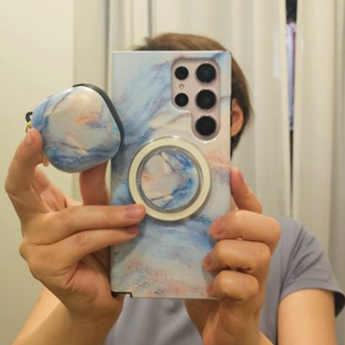 "雲石紋的設計好有質感 它讓整個手機都變成襯托衣裝的時尚和品味 配合magsafe 配件當支架使用也很方便。大愛~"