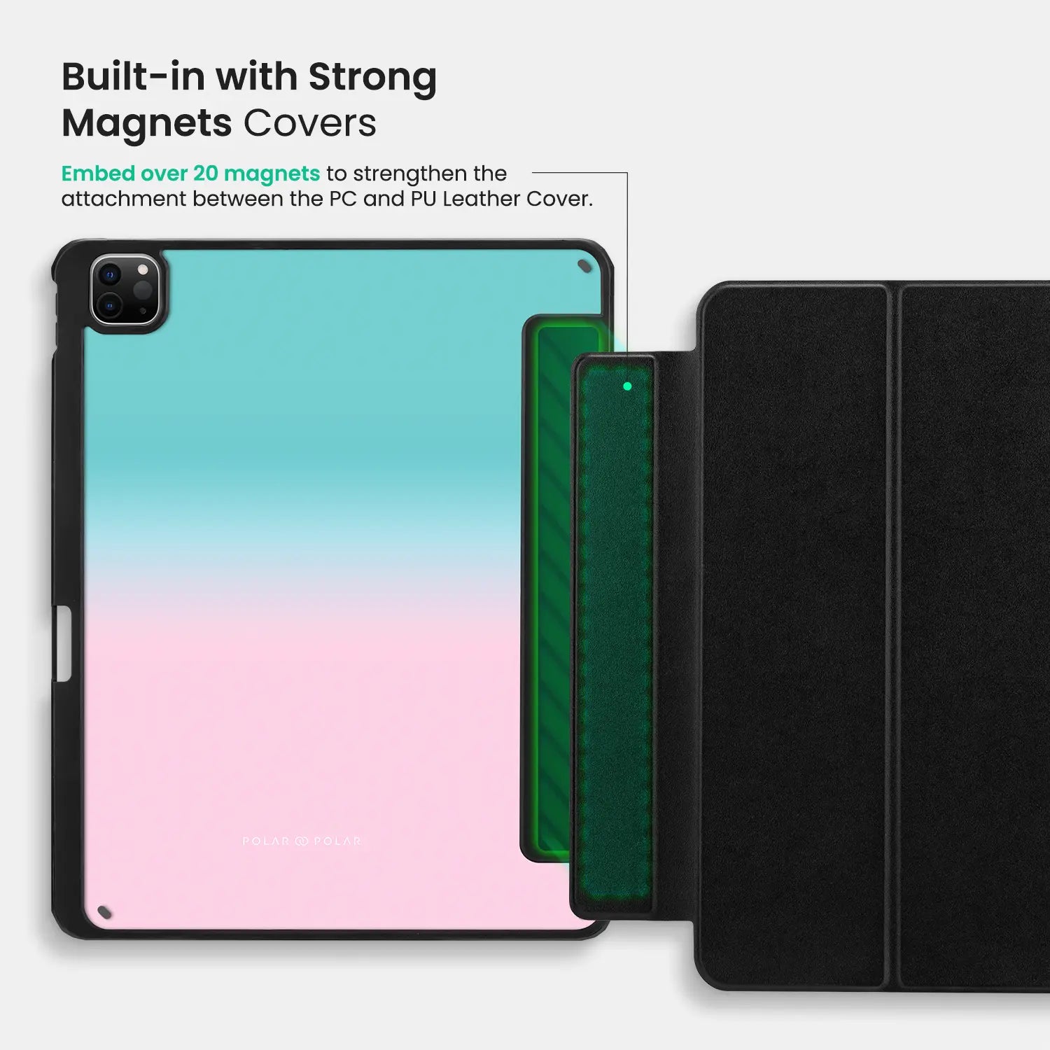 Embed over 20 magnets to strengthen the attachment between the PC and PU Leather Cover.