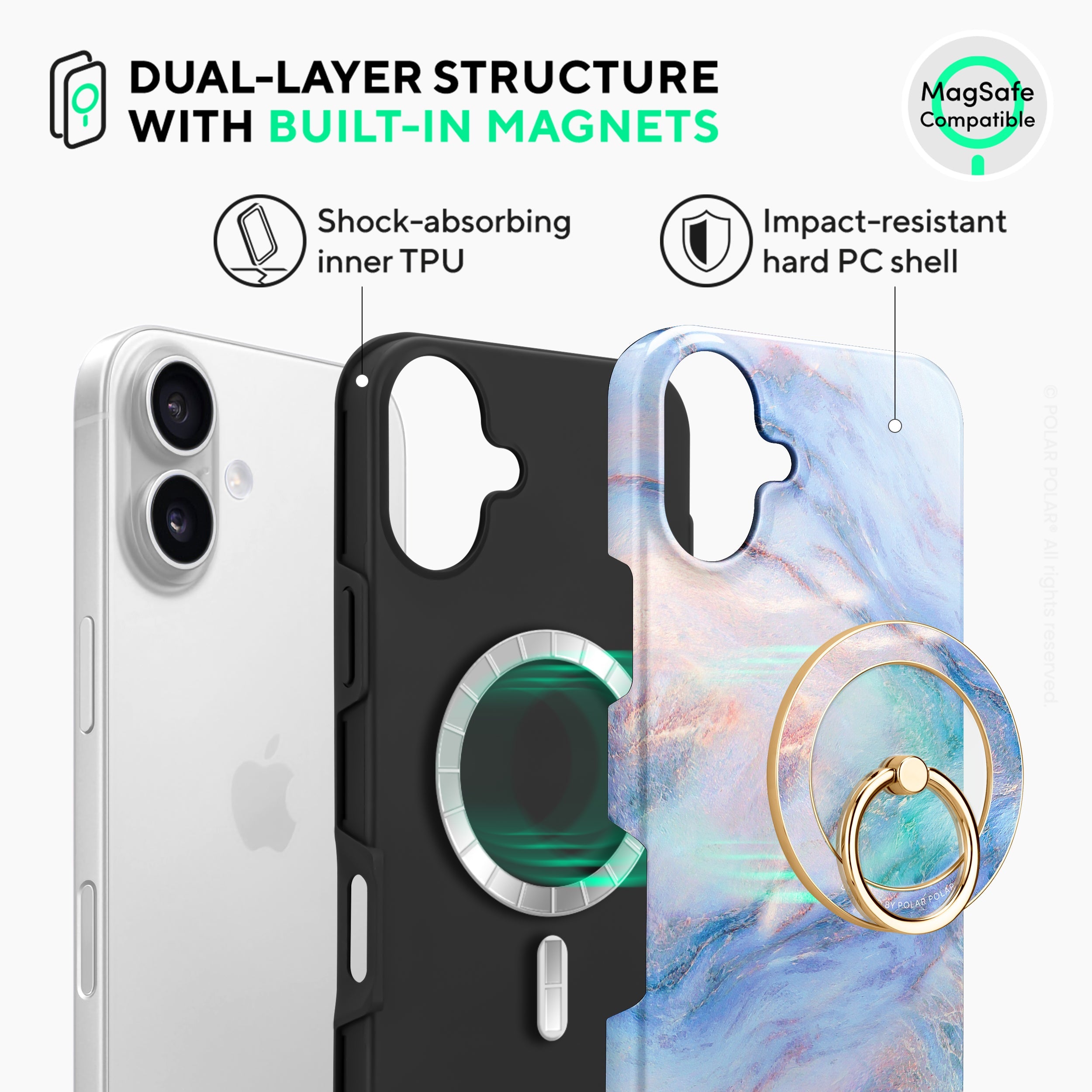 - 雙層結構:硬PC外殼+軟TPU內膽