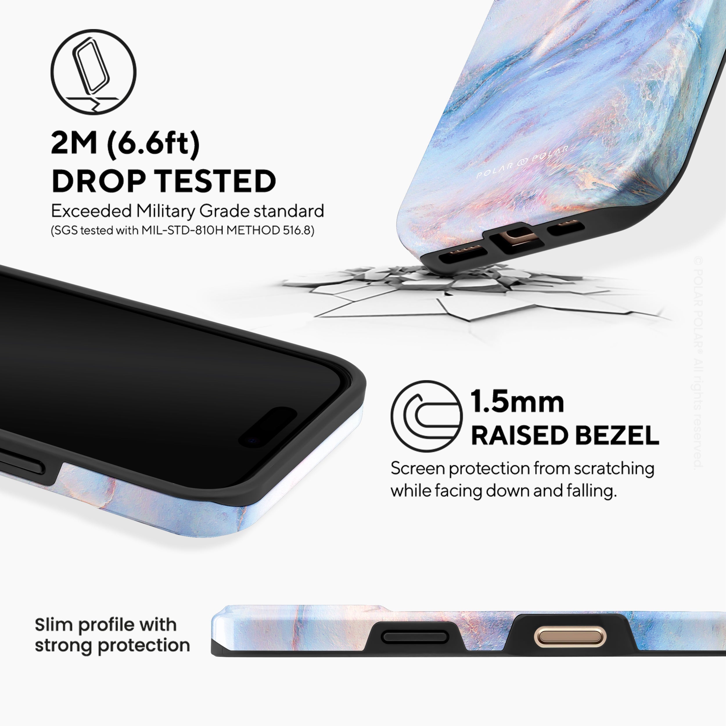 - 通過2公尺(6.6英尺)美國軍規防摔測試 (MIL-STD-810H METHOD 516.8)