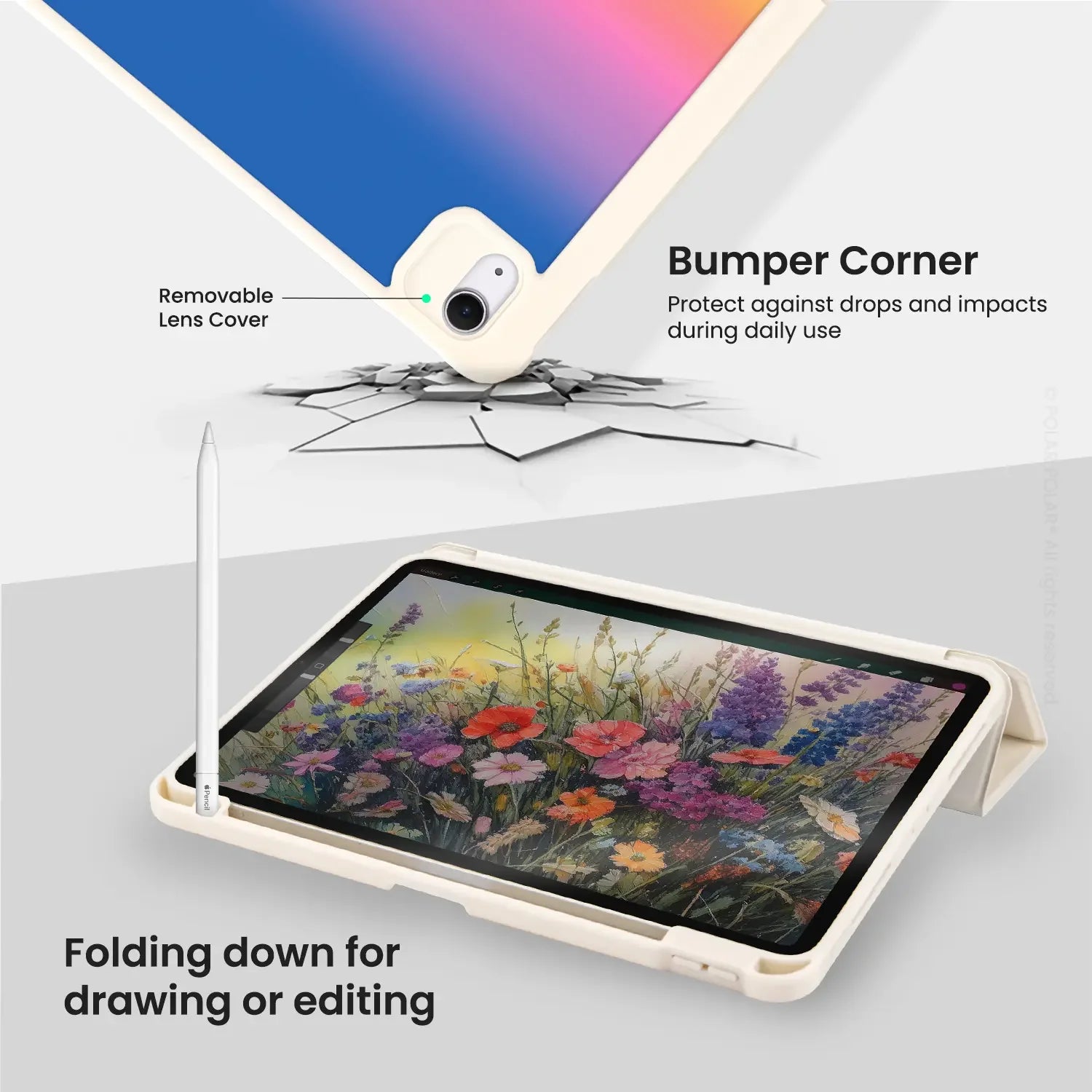 Open the cover to wake the iPad and close it to put it to sleep automatically. The pencil slot enables the Apple Pencil to charge while you're on the go.
