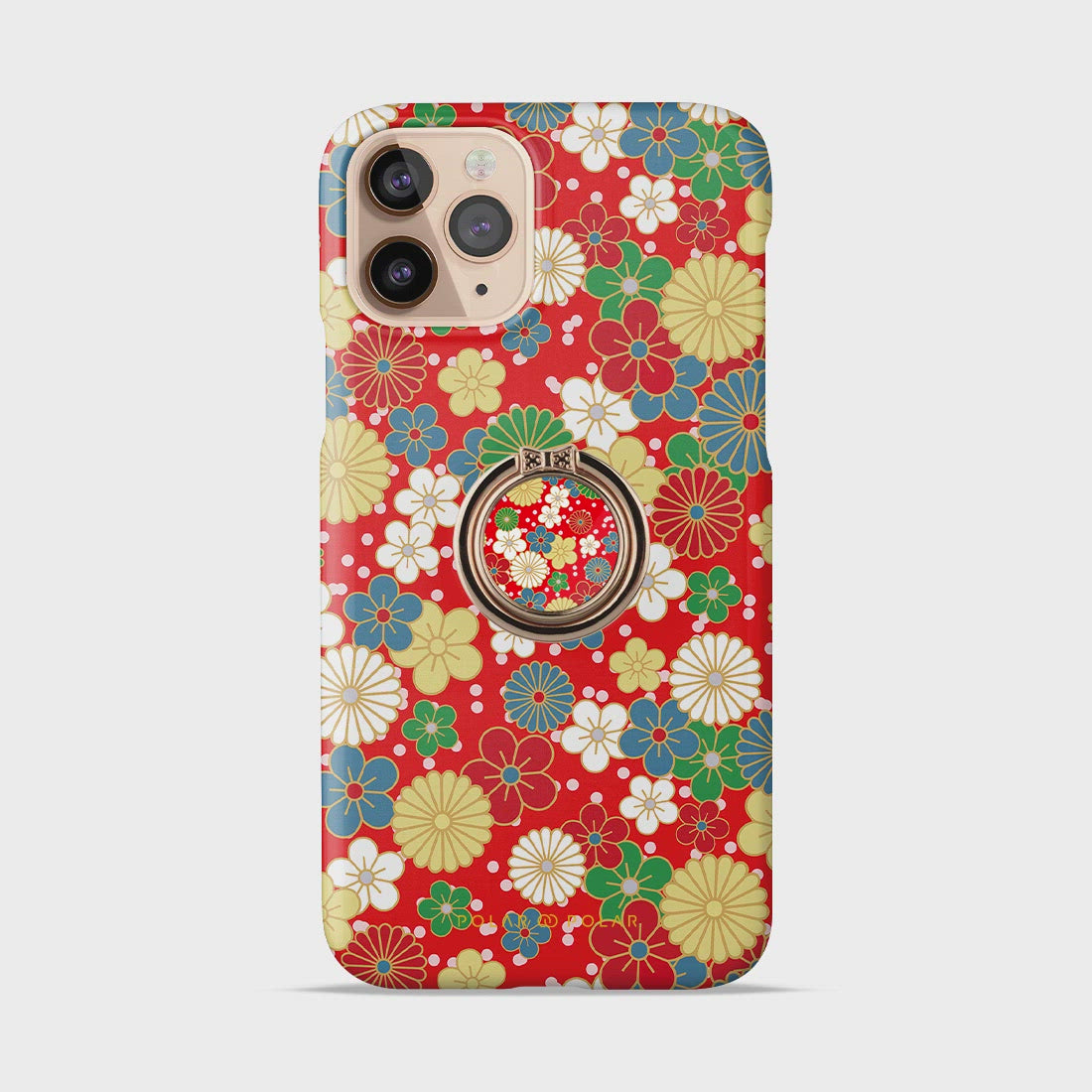 日系橙紅花紋 手機指環支架 (3M貼)
