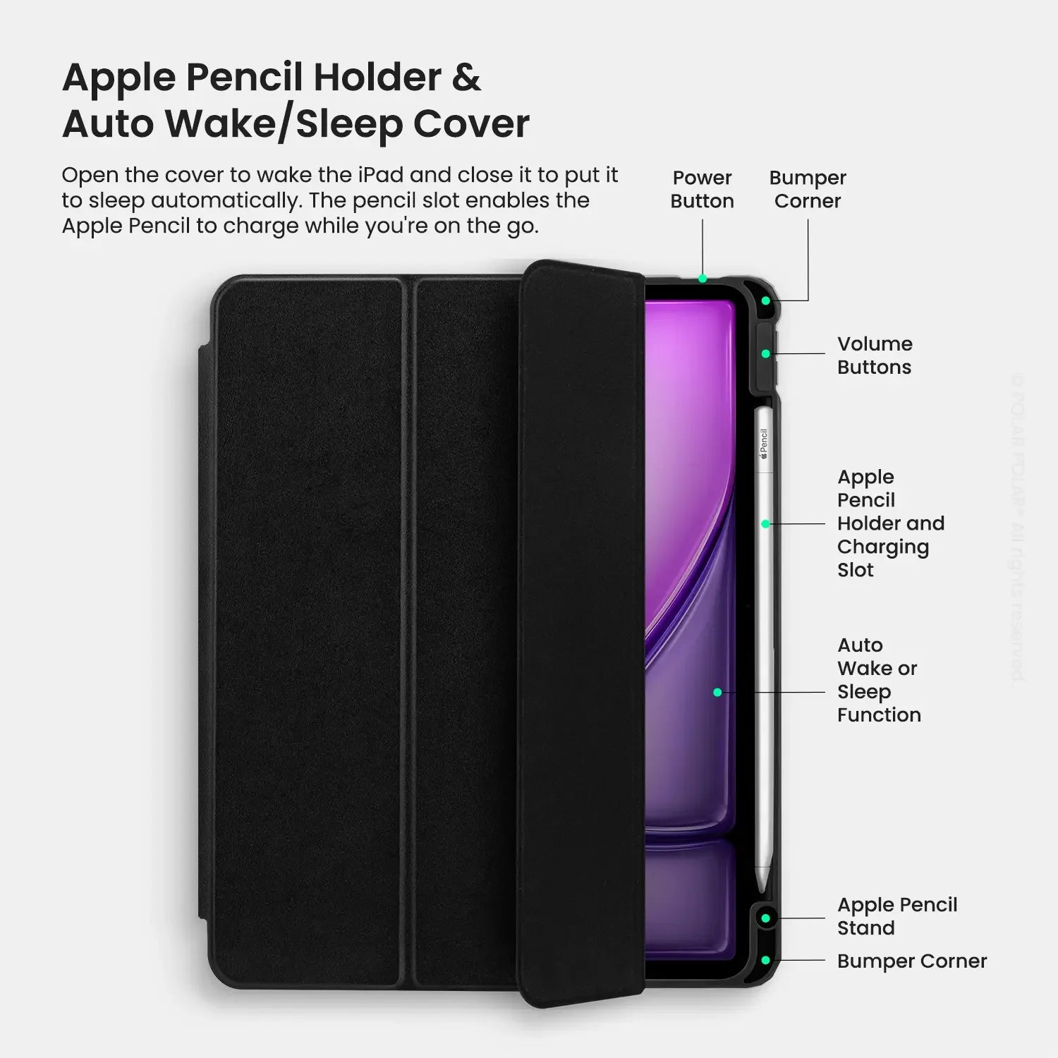 Apple Pecil Holder and Auto Wake/Sleep Cover