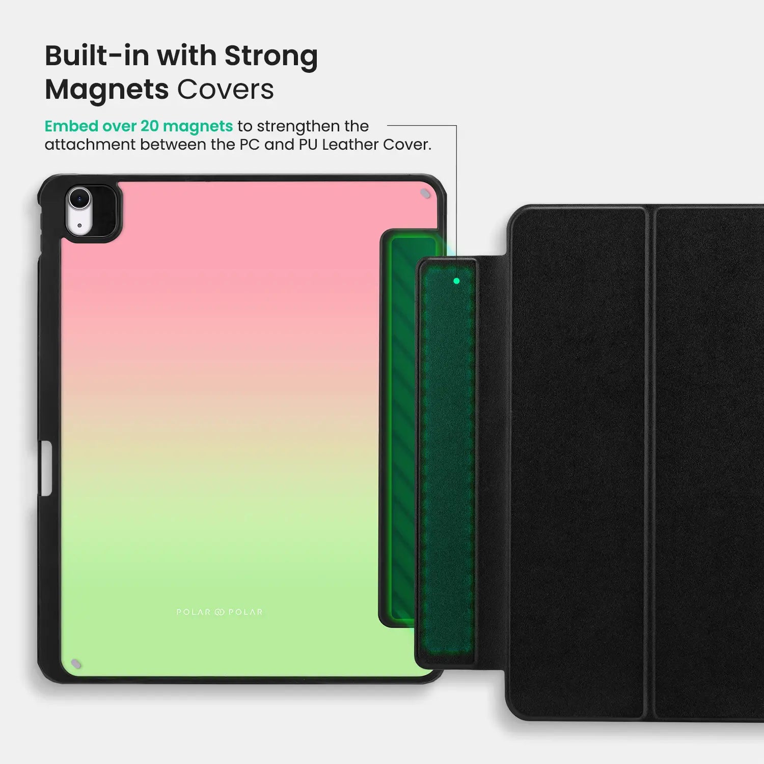 Embed over 20 magnets to strengthen the attachment between the PC and PU Leather Cover.